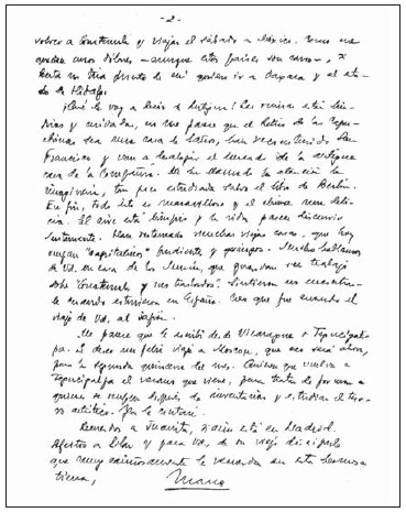 Me parece que le escribí desde Nicaragua o Tegucigalpa. Le deseo un feliz viaje a Moscou, que creo será ahora, para la segunda quincena del mes. Quieren que vuelva a Tegucigalpa el verano que viene, para tratar de formar a quienes se ocupen después de inventariar y estudiar el tesoro artistico. Ya le contaré.
