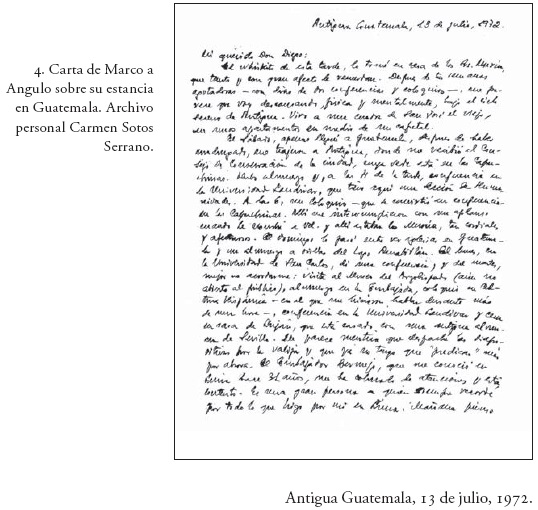 ¡Qué le voy a decir de Antigua! Las ruinas están limpias y cuidadas. No me parece que el Retiro de las Capuchinas sea una casa de baños, han reconstruido San Francisco y van a desalojar el Mercado de la antigua casa de la Compañía. Me ha llamado la atención la imaginería, tan poco estudiada salvo el libro de Berlín. En fin, todo ésto es maravilloso y el clima una delicia. El aire está limpio y la vida parece discurrir lentamente. Han restaurado muchas viejas casas, que hoy ocupan "capitalinos" pudientes, y gringos. Mucho hablamos de Vd. en casa de los Murcia, que guardan su trabajo sobre "Guatemala y sus traslados". Sintieron no encontrarle cuando estuvieron en España. Creo que fue cuando el viaje de Vd. al Japón.