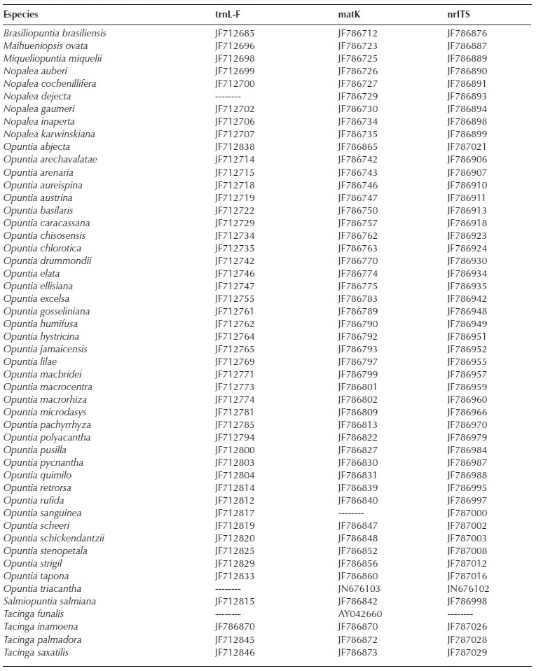 Apéndice 1. Números de acceso de Genebank correspondientes a las secuencias empleadas en el presente estudio. Los números de acceso para la nueva especie se encuentran en el texto principal.