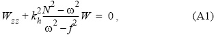 con las condiciones de frontera W (-H) = 0, W (0) = 0 (tapa rígida). Aquí, ω es la frecuencia de la onda interna, f es el parámetro de Coriolis, kh es el número de onda horizontal y N2 es la frecuencia de Brunt-Väisalä. Como las mediciones se realizaron en agua somera (i.e., Hλ, << 1, donde H es la profundidad del lugar y λ la longitud de las ondas internas), para estimar los parámetros de las ondas no lineales se utilizó el modelo no lineal de Korteweg de Vries (ver Miropol'sky 2001):