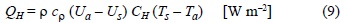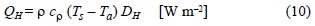 donde ρ es la densidad del aire [Kg m-3], cρ es el calor específico del aire [J Kg-1 K-1], DH es el coeficiente de intercambio de calor [m s-1] , Ts es la temperatura de la superficie del sedimento [K] y Ta es la temperatura del aire [K] (z = 3 m).