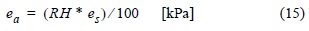 El déficit de presión de vapor se obtuvo de las siguientes fórmulas (Allen et al. 1998, Evett 2002):