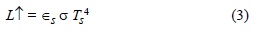 La radiación de onda larga terrestre (L↑) se estimó a partir de la siguiente ecuación (Evett 2002):