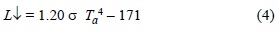 donde σ es la constante Stefan-Boltzmann y Ta es la temperatura del aire [K].