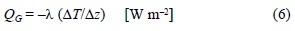 El flujo de calor en el suelo (QG) a través de la capa superficial (0.05-0.15 m de profundidad) se determinó en base a datos de temperatura utilizando la ecuación de Fourier (Oke 1978):