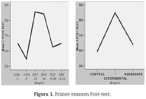 Los grupos Control y Experimental fueron equivalentes en cuanto a los conocimientos previos y habilidad para razonar del estudiante. Al administrar los ejercicios de química se observó que los alumnos que utilizaron el manual pedagógico superaron el desempeño de los estudiantes que utilizaron el manual cotidiano. El análisis estadístico de los resultados obtenidos al administrar los exámenes de química revela que los estudiantes que utilizaron el manual pedagógico (grupo Experimental) tuvieron una media significativamente más alta que los que emplearon el manual cotidiano (grupos Control y Referente). Los grupos Control y Referente se comportaron de manera similar. Esto se aprecia en el resultado del análisis estadístico que se muestra en las tablas 4 y 5, así como en las gráficas de las figuras 1 y 2. Los resultados en los ejercicios y exámenes de química muestran que los estudiantes que emplearon el manual pedagógico dan un número mayor de respuestas correctas y la claridad de sus argumentos refleja cómo se llegaron a transformar sus ideas previas. En la mayoría de las respuestas dadas por ellos a la pregunta que se muestra en la página 104, separan correctamente a los componentes de la mezcla utilizando adecuadamente varios métodos, a diferencia de los alumnos de los grupos Control y Referente, que en la mayoría de los casos proponen una combinación errónea de dichos métodos, por ejemplo, no reconocen que los compuestos sólidos están disueltos en la mezcla y proponen filtrarlos para efectuar su separación.