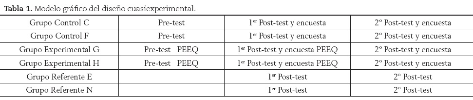 El tratamiento experimental consistió en la aplicación del Programa de Estrategias para la Enseñanza de la Química (PEEQ), que es la base del modelo didáctico.