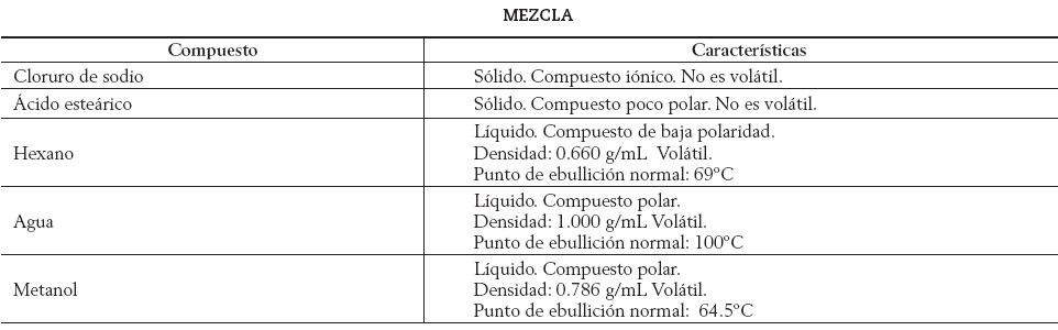 a) ¿Qué métodos seleccionarías para lograr la separación de cada uno de los compuestos presentes en la mezcla (recuerda que todos ellos se encuentran mezclados)?