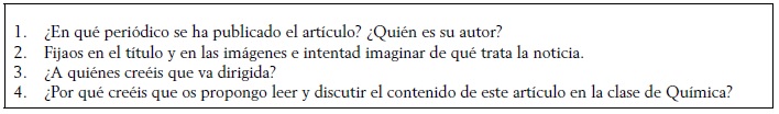 Se pidió al alumnado que leyera el título de la noticia y el texto al pie de la fotografía. Cada estudiante, individualmente, pensó la respuesta a las siguientes preguntas: