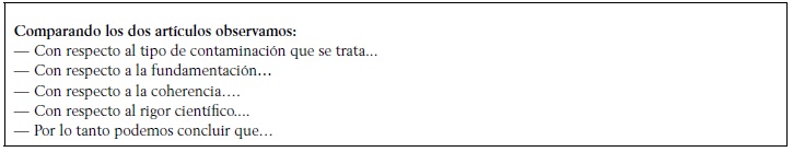 Finalmente entre todos los componentes del grupo redactaban un texto comparando los dos artículos.