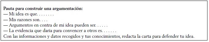 Para escribir la argumentación el alumnado disponía de la pauta siguiente: