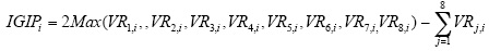 Donde IGPIP es el Índice General de Identificación Partidista del i-ésimo encuestado; vr, es el valor de su respuesta al j-ésimo partido, y Max indica, como es la costumbre, el valor máximo entre un conjunto de argumentos, en este caso el valor de las respuestas para cada partido. Al duplicarlo se pretende que la ecuación se transforme automáticamente en:
