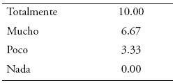 Donde IS es el índice de sofisticación del entrevistado j-ésimo, que se mueve en una escala de 0 a 10; X es la respuesta a la pregunta i-ésima, que pude asumir los siguientes valores: