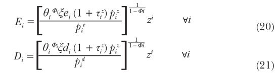 es el precio de exportación en moneda nacional. Además, la balanza de pagos se asume en equilibrio, donde Ei son las exportaciones del bien iésimo.