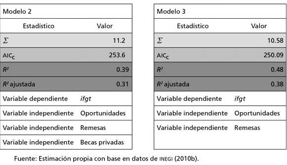 Con propósitos comparativos se presentan los estadísticos de ajuste resultado de la estimación de los modelos 2 y 3.