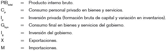 Si el PIB por la vía del gasto equivale a PIBtotal = Cp + lp + Gbys + lg + X - M