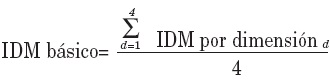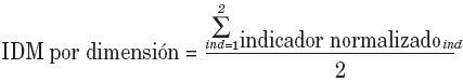 Donde cada dimensión de desarrollo tiene dos indicadores normalizados (ind =1, 2).