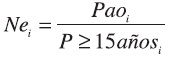 P > 15 añosi es el total de la población de 15 años o más en el municipio i.