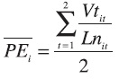 Donde: Vtit es el total de votos emitidos en el municipio i en las dos elecciones consecutivas t=1,2.
