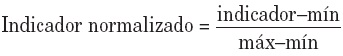 Donde: indicador es el valor tomado por el indicador j en el municipio i, mín es el valor mínimo que toma el indicador/ en la muestra de referencia, máx es el valor máximo que toma el indi i en la muestra de referencia.