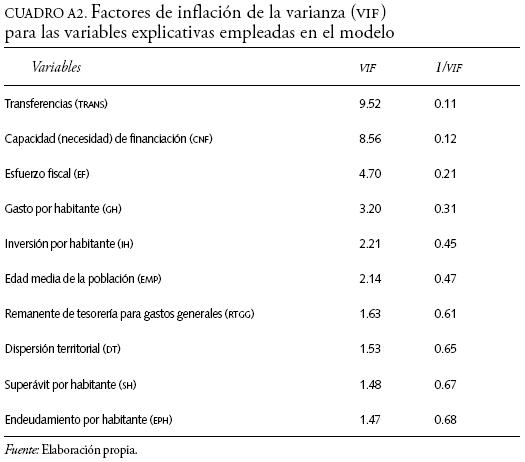 Los resultados del cuadro A2, que caracterizan el análisis VIF, demuestran el incremento de la variación entre las variables, indicando que no existe multicolinealidad (correlación fuerte entre las variables independientes). En general, entendemos que los resultados por debajo de diez son satisfactorios, si no se presenta este problema.