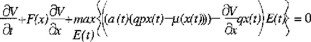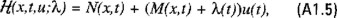 La función C(x(t)) está dada por la ecuación (6.15). La funcional J(x(t),u(t),t) se obtiene a partir de (6.4) eliminando la variable de control E(t) mediante el uso de la ecuación (6.1) considerando ahora como variable de control u(t) a la tasa de crecimiento poblacional. El Hamiltoniano