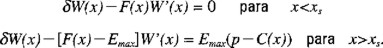 Consideremos a continuación el problema de la obtención del mejor nivel de escape constante. Si dW(x)/dxs = 0 posee solución única para toda x entonces claramente dicha condición lo determinará. Derivando las ecuaciones (A2.9) y (A2.10) con respecto a xs se confirmará que dW(x)/dxs = 0 para toda x, siempre y cuando xs satisfaga