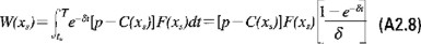 Consideremos ahora la estrategia que mantiene el nivel de biomasa poblacional en un valor constante xs (estrategia de escape constante o de biomasa remanente constante o en equilibrio). La función de valor W(x) (la cual denota el valor presente de los ingresos netos que se obtienen mediante la aplicación de la anterior estrategia con la condición x(t0) = x0) satisface, luego de usar un argumento similar al utilizado en el establecimiento de la ecuación (A2.4)