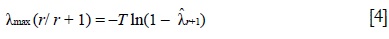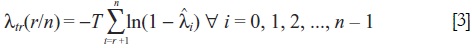 donde es el i-ésimo eigenvalor o raíces características del sistema de ecuaciones |Πnn- λInn|= 0 y T es el número de observaciones. La contrastación con base en el estadístico de la traza se realiza secuencialmente desde r = 0 hacia r = n - 1 hasta que la hipótesis nula deje de rechazarse. A partir del estadístico de la traza se puede calcular el estadístico del máximo eigenvalor, λmax, cuya hipótesis nula es que existen exactamente r vectores cointegrados en un conjunto de n variables, contra la hipótesis alternativa de que existen r + 1 vectores cointegrados.