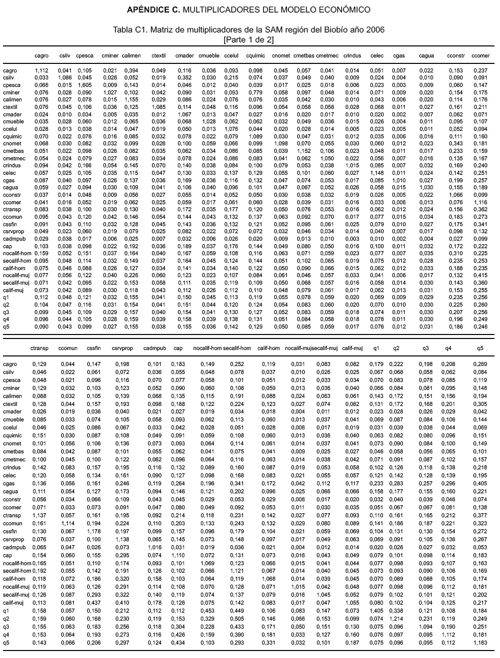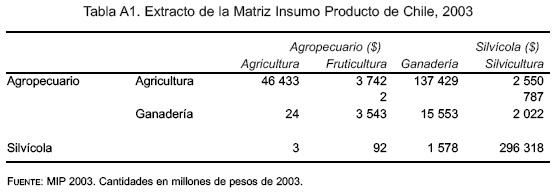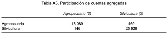 Así, se ha desagregado el sector agropecuario y silvícola en la nueva SAM. Este procedimiento se utiliza iterativamente en el resto de las cuentas relacionadas con el sector agropecuario y luego para el sector silvícola con cada una las restantes cuentas de la matriz.