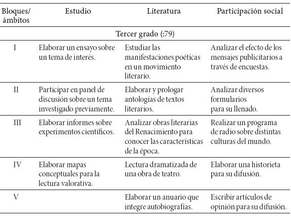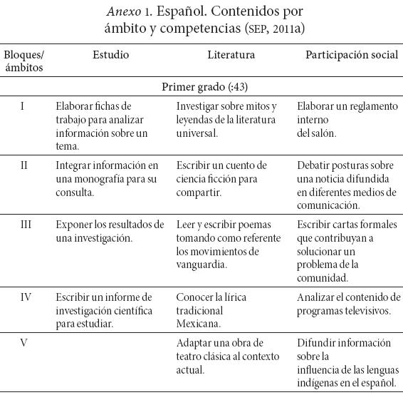 Anexo 1. Español. Contenidos por ámbito y competencias (SEP, 2011a)