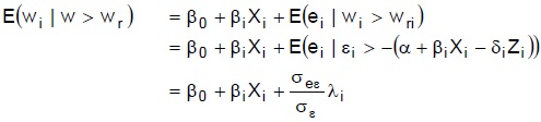 El sesgo de selección hace que ei no sea independiente de las variables independientes en la ecuación definiendo a wi, violando una de las mayores hipótesis de la regresión lineal. Heckman (1979) propone que: