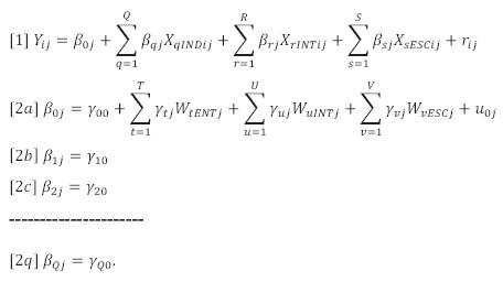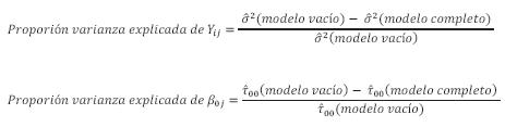 La explicada por estos modelos se estima, a nivel individual y escolar respectivamente, a través de: