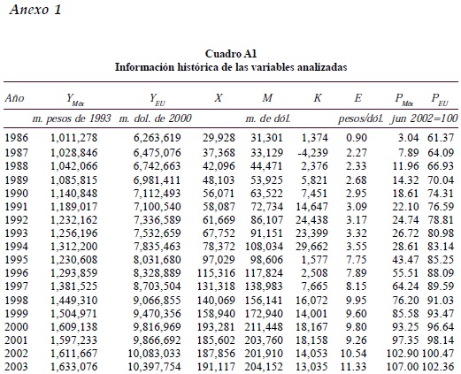 Por cierto, los resultados contenidos en el Cuadro A2 coinciden con los reportados por Loría (2001), Garcés (2002), y otros trabajos que analizan el sector externo mexicano, por ejemplo López y Guerrero (1998) y Guerrero (2003); y en el nivel internacional coinciden con los extensos trabajos de Senhadji (1997) y Senhadji y Montenegro (1998).