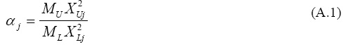 Se consideran los modos no amortiguados del sistema con dos grados de libertad mostrado en la Figura 1. Supongamos que vibra libremente en un modo Xj , y definamos αj como la relación entre la energía cinética impartida a la masa superior y la energía cinética de la masa inferior, tal que: