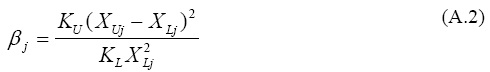 Definamos de manera similar βj como la relación entre la energía elástica almacenada en el resorte superior y la energía elástica almacenada en el resorte inferior durante la vibración libre, tal que: