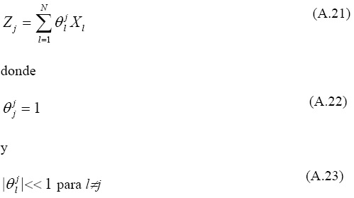 Vemos entonces, que si las propiedades del sistema son tales que la ecuación A-18 se cumple, la parte imaginaria de los vectores modales desaparece. La semejanza entre la ecuación A-32 y la A-17 es aparente. Por lo tanto, esta ecuación puede ser interpretada como el coeficiente de amortiguamiento acoplado para el javo modo, el cual dependiendo de los valores de ξU y ξL puede ser positivo o negativo. La ecuación A-32 indica que a menos que el amortiguamiento y la sintonía no difieran apreciablemente de la ecuación A-18, el uso de los modos complejos se requiere para el cálculo de la respuesta de los sistemas mecánicos bajo consideración. No obstante, las ecuaciones A-17 y A-28 demuestran que los cálculos de frecuencias y amortiguamientos usando los modos clásicos serán aproximaciones de primer orden de los valores exactos.