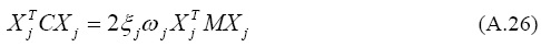 donde Mkl, Ckl, y Kkl son los términos de las matrices generalizadas de masa, amortiguamiento, y rigidez respectivamente. De A.24 para k=j, tomando en consideración la ortogonalidad de los modos no amortiguados con respecto a las matrices de masa y rigidez, e ignorando términos de segundo orden asociados con los elementos fuera de la diagonal de la matriz de amortiguamiento, tenemos: