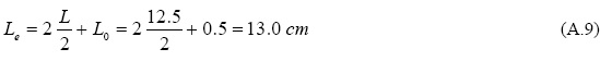 De lo anterior se obtiene que considerando la barra se suelda a cada placa en una longitud L=12.5 cm, la longitud equivalente para representar a la longitud total de barra de 25.5 cm, Fig A.1, es Le= 13.0 cm, la que resulta de:
