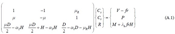 La solución del sistema de ecuaciones A. 1 para las fuerzas de reacción Cs, Ct, R se muestran en las ec. A.2, A.3, A.4, respectivamente.