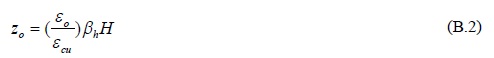 La altura zo, a partir de la cual se inicia el comportamiento inelástico del concreto, figura B.1(a), se calcula con base en la distribución de deformación lineal, y por semejanza de triángulos se obtiene:
