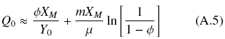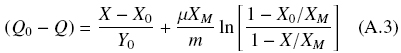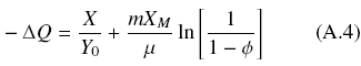 After some rearrangement, assuming that, X0 « X < XM, and defining, Φ = X/XM, it is possible to estimate the decrease of the substrate, -ΔQ = Q0 - Q, as follows