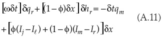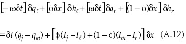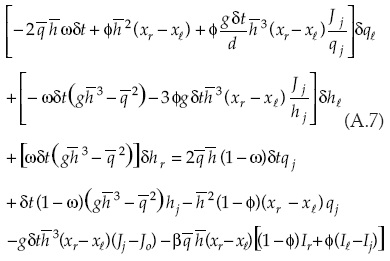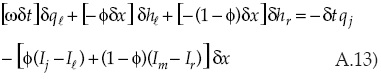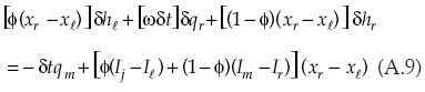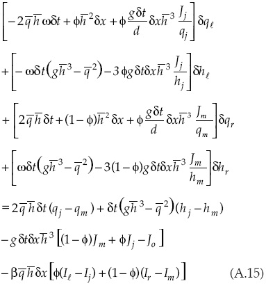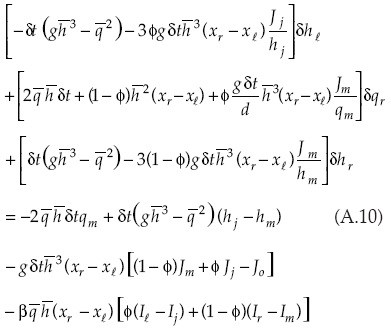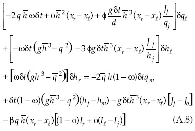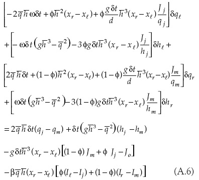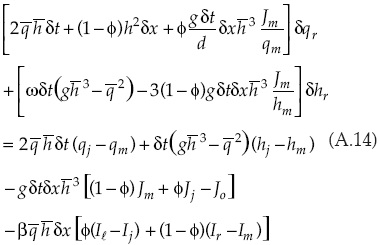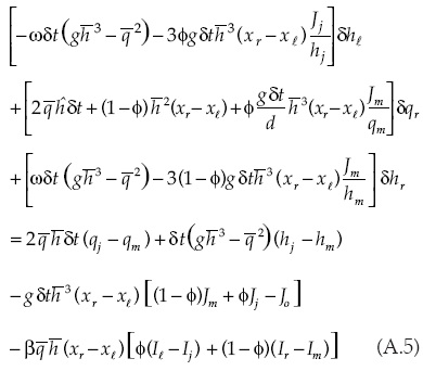 Las entradas del sistema matricial relacionadas con la solución de la forma discreta de la ecuación de continuidad para el caso de la primera celda son: