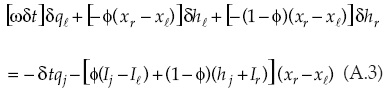 Las entradas del sistema matricial relacionadas con la solución de la forma discreta de la ecuación de continuidad para la segunda celda son: