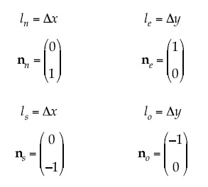 Las expresiones algebraicas que se presentan aquí están ordenadas para facilitar su implementación en un programa de naturaleza lineal, es decir un thread. En caso de paralelización del problema, donde se envía cada VFC como thread diferente, las expresiones se calculan de esta forma secuencial. El orden de las expresiones se ha hecho mediante una distribución en matriz de 2 x 2, una casilla para cada uno de los cuatro lados del VFC.