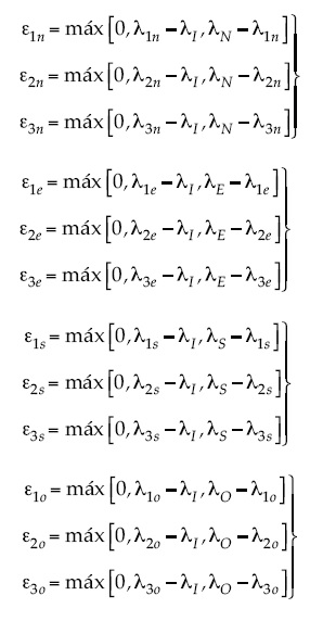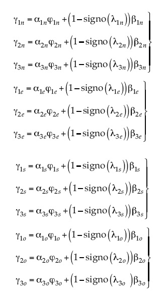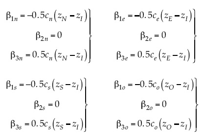 En este apéndice se muestra la particularización de las expresiones (5) a (9) del denominado enfoque vectorial al caso de implementación del enfoque ráster, objeto del presente trabajo. Por particularización se entiende la substitución y simplificación de dichas expresiones, tomando NI = 4 los siguientes valores: