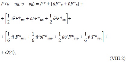 Para reemplazar (VIII.1) en (6) recordamos que la expansión en serie de Taylor alrededor de los puntos (υ0 ,ν0) para F es: