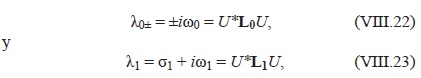 En la aproximacion lineal alrededor del punto υ0 de la ecuacion VIII.15, se tiene que la pertubación se escribe como (u = u0 + εu1), y se cumple que ∂u1/∂t = L0u1, lo que implica una solucion exponencial, L0U = λ0± U, de forma que cualquier función puede escribirse como una combinación lineal de los eigenvectores U, en particular u1 = WU = W*U-.