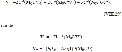 que se conoce como la ecuación de Landau Ginzburg con coeficientes complejos. Nuestro interés es obtener los valores de los parámetros c0, c1 y c2 para nuestro modelo BVAM. Normalizando con σ1, de (VIII.23) obtenemos el valor del parámetro c0