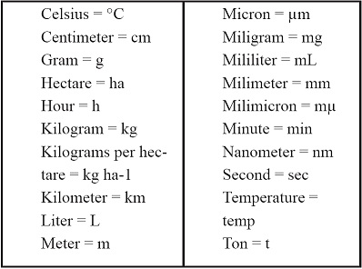 Tables. Must contain readily comprehensible titles that need no reference to the text. Tables must document but not duplicate the data presented in the text. Include them numerically, according to the text, in separate pages and after the References. The legend must be written in lowercase letters. Identify footnotes of the tables with lowercase letters of the end of the alphabet (in sequence: x, y, z). To identify levels of statistical significance, use asterisks (*= p≤0.05, **= p≤0.01). In numbers, use only one decimal place, e. g. 3.2%, not 3.195%. Figures. Number each figure (graphs, drawings, photographs, etc.) so they match the reference in the text. Legends are to be written in lowercase letters, on a separate page, and attached after the tables. Photographs must be original and can be either in color or black and white. Bad quality photographs will not be accepted. Do not write or stick arrows on the original photos. Abbreviations and symbols used in figures must correspond with the same style used in the text. When a set of figures are presented with only one legend, components will be identified with capital letters of the same type and size. Specialize References and Units of measure.